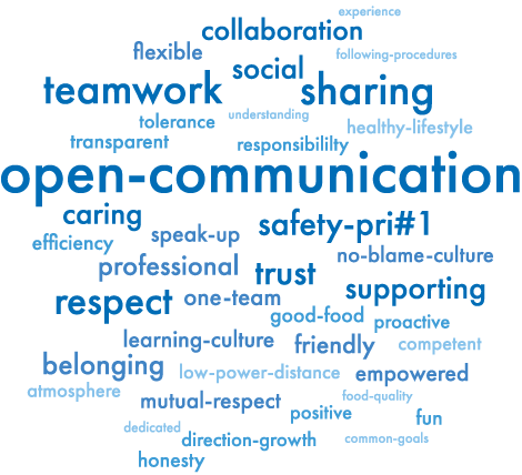 The word cloud shows what our sea and shore employees say about our culture
